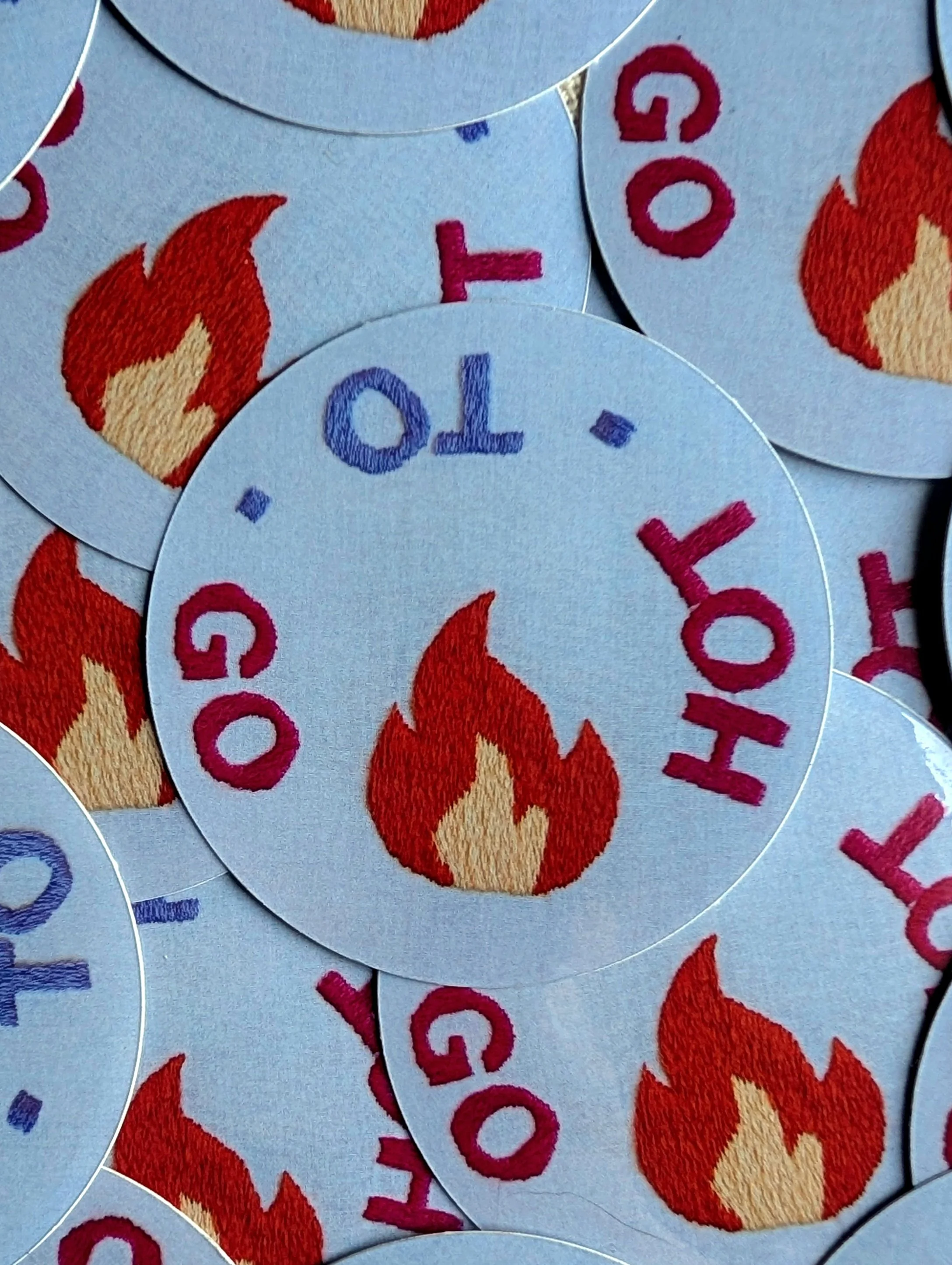 Love the look of embroidery but don’t have the wall space for a hoop? Get a sticker instead! This 2.5” vinyl sticker is perfect for a notebook, a water bottle, wherever!