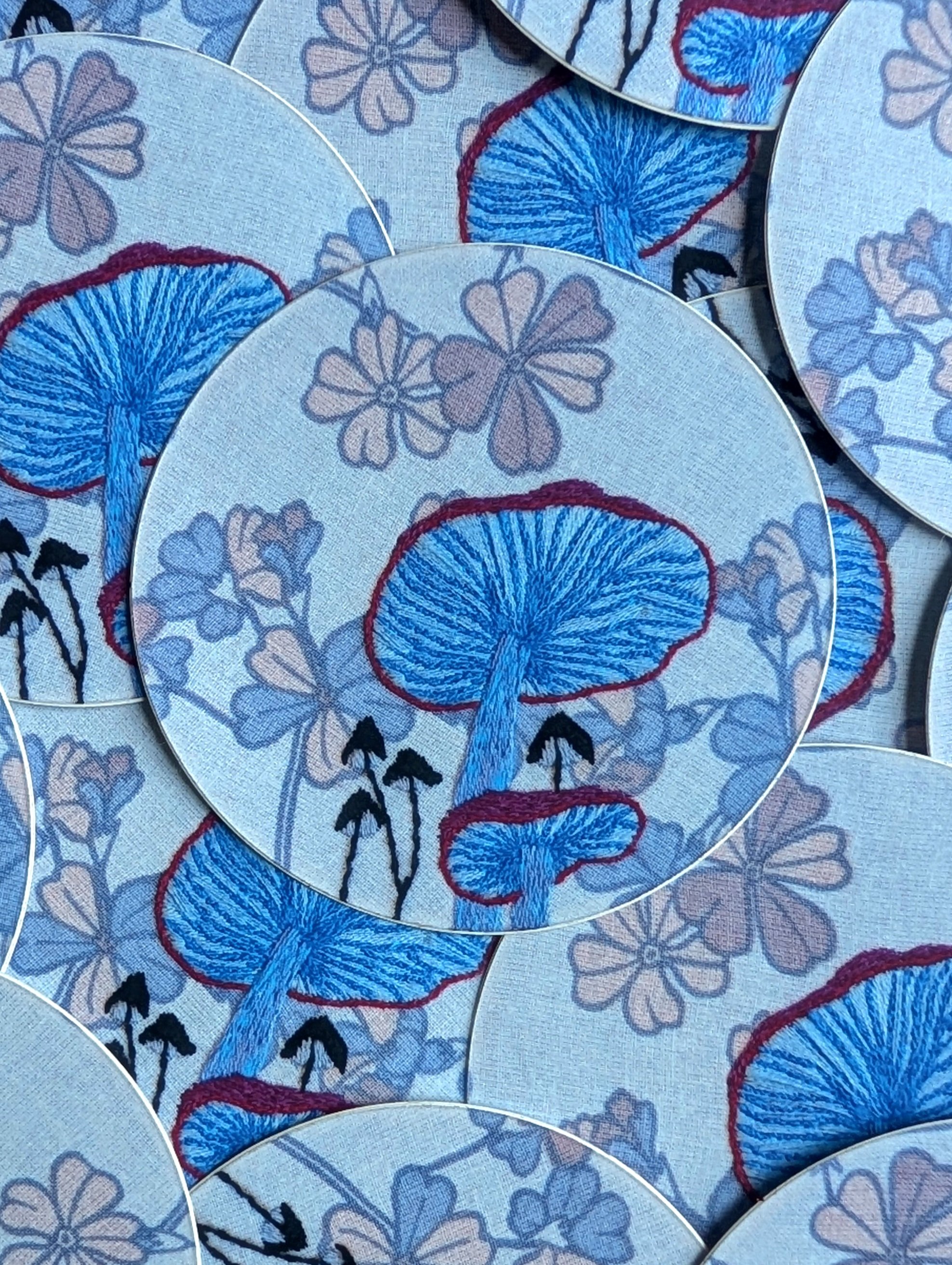 Love the look of embroidery but don’t have the wall space for a hoop? Get a sticker instead! This 2.5” vinyl sticker is perfect for a notebook, a water bottle, wherever!