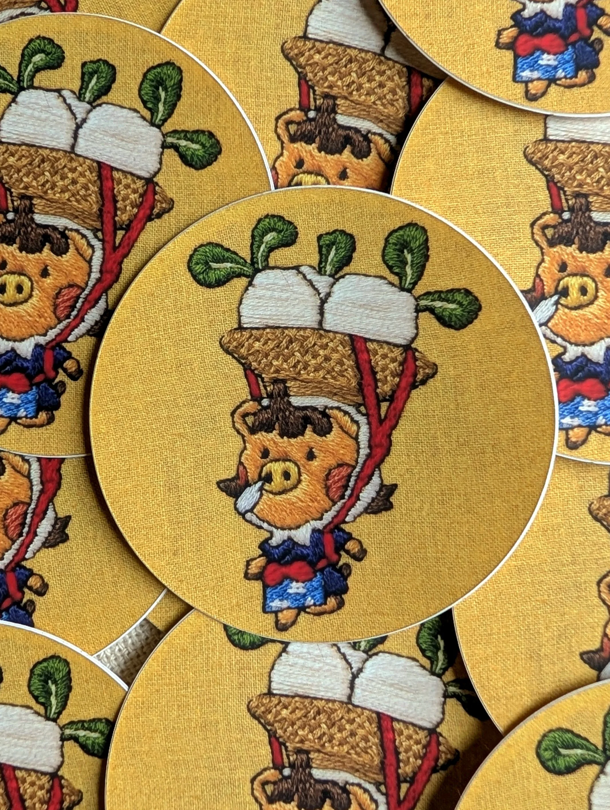 Love the look of embroidery but don’t have the wall space for a hoop? Get a sticker instead! This 2.5” vinyl sticker is perfect for a notebook, a water bottle, wherever!