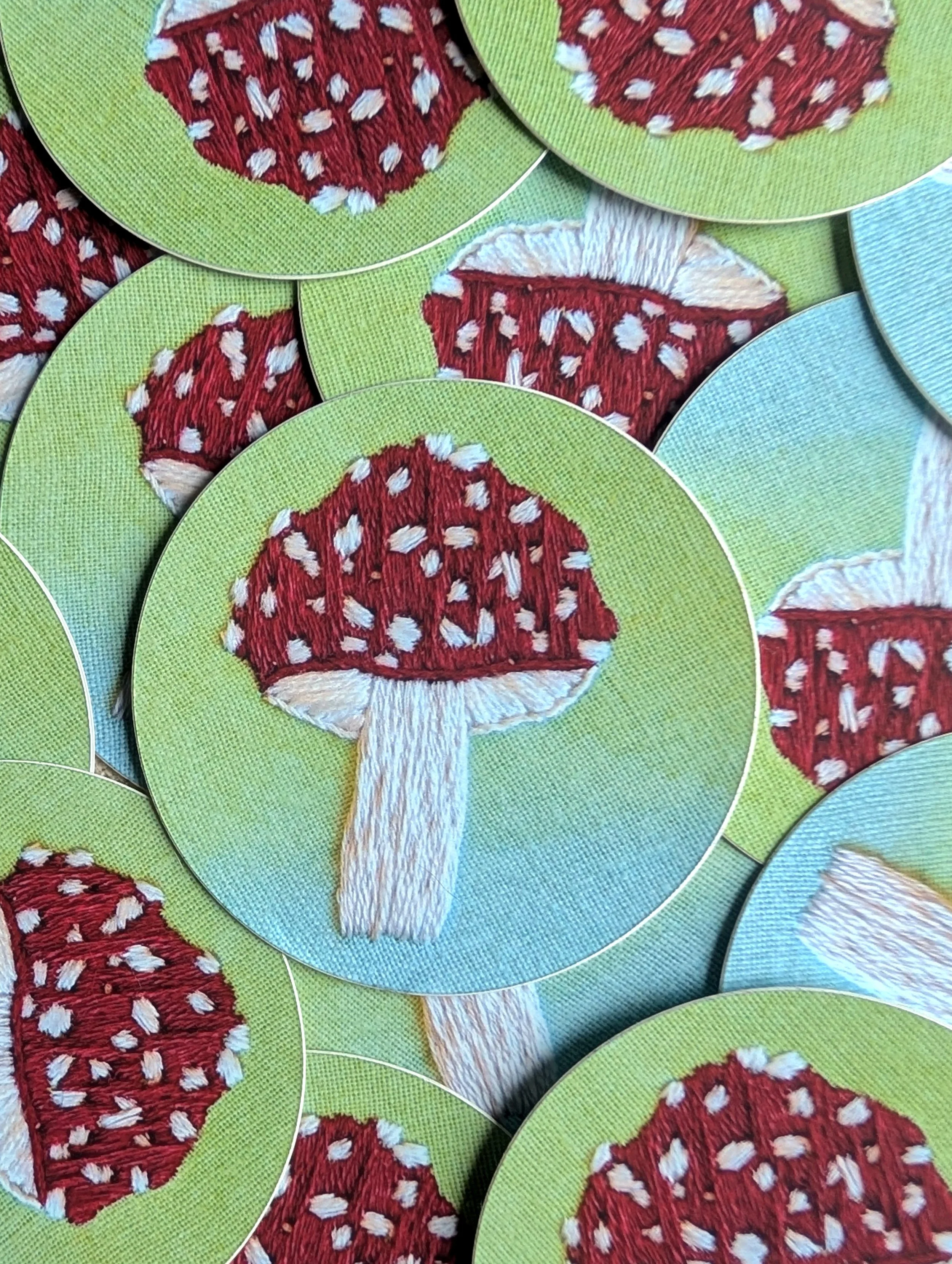Love the look of embroidery but don’t have the wall space for a hoop? Get a sticker instead! This 2.5” vinyl sticker is perfect for a notebook, a water bottle, wherever!